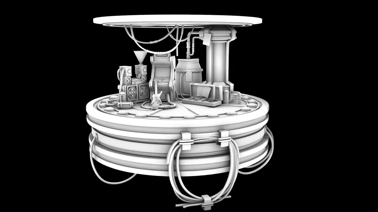 ao diorama of sci fi arcade room modelled in maya